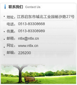 電話:0513-83209668 傳真:0513-83308989 網址:www_ntlx_cn.wl-cyx.cn E-mail:ntlx@ntlx.cn